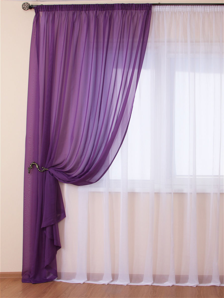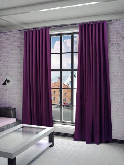 Lorsque vous choisissez des textiles pratiques et élégants pour les fenêtres, vous devez faire attention à la teinte, à la texture et à la qualité du tissu. De plus, vous devez vous appuyer sur la palette de couleurs de l'intérieur. Par exemple, les rideaux violets ont fière allure contre un revêtement mural neutre.