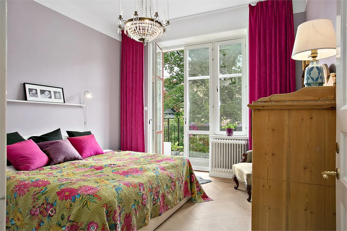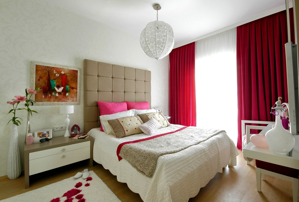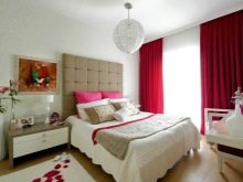 - couleur rouge convient pour une chambre avec un lit matrimonial. C'est la romance, la passion, l'amour. Mais dans la chambre, il est nécessaire d'observer la mesure avec cette couleur. Sinon, il y a agressivité, anxiété, nervosité.