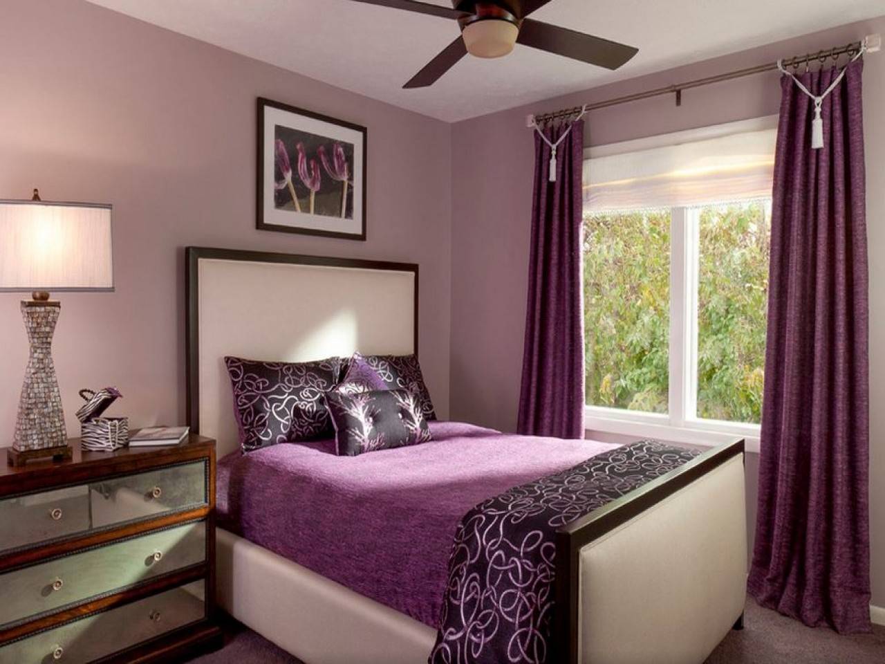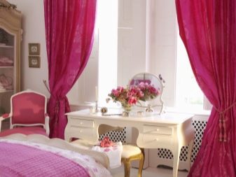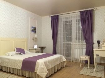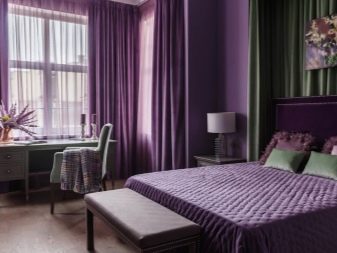 - Nuances violettes ou lilas en grande quantité peut être ennuyeux, donc les rideaux de cette couleur doivent être faits de tissus fins et fluides.