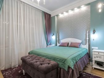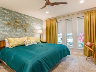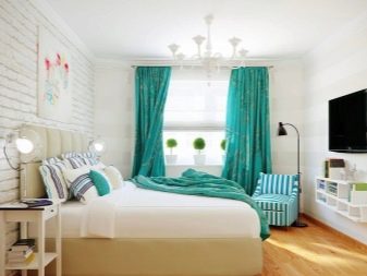 - Rideaux en aqua vont bien avec des murs de couleur pastel. Et si vous utilisez des couleurs noir et blanc, alors les rideaux émeraude sont la meilleure solution ici.