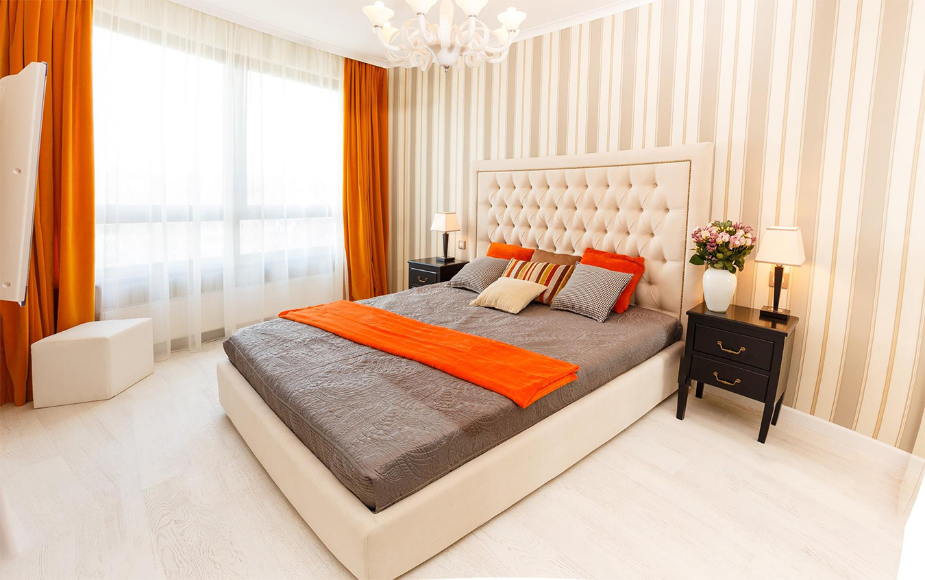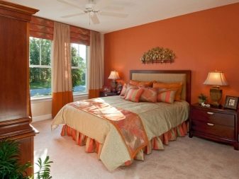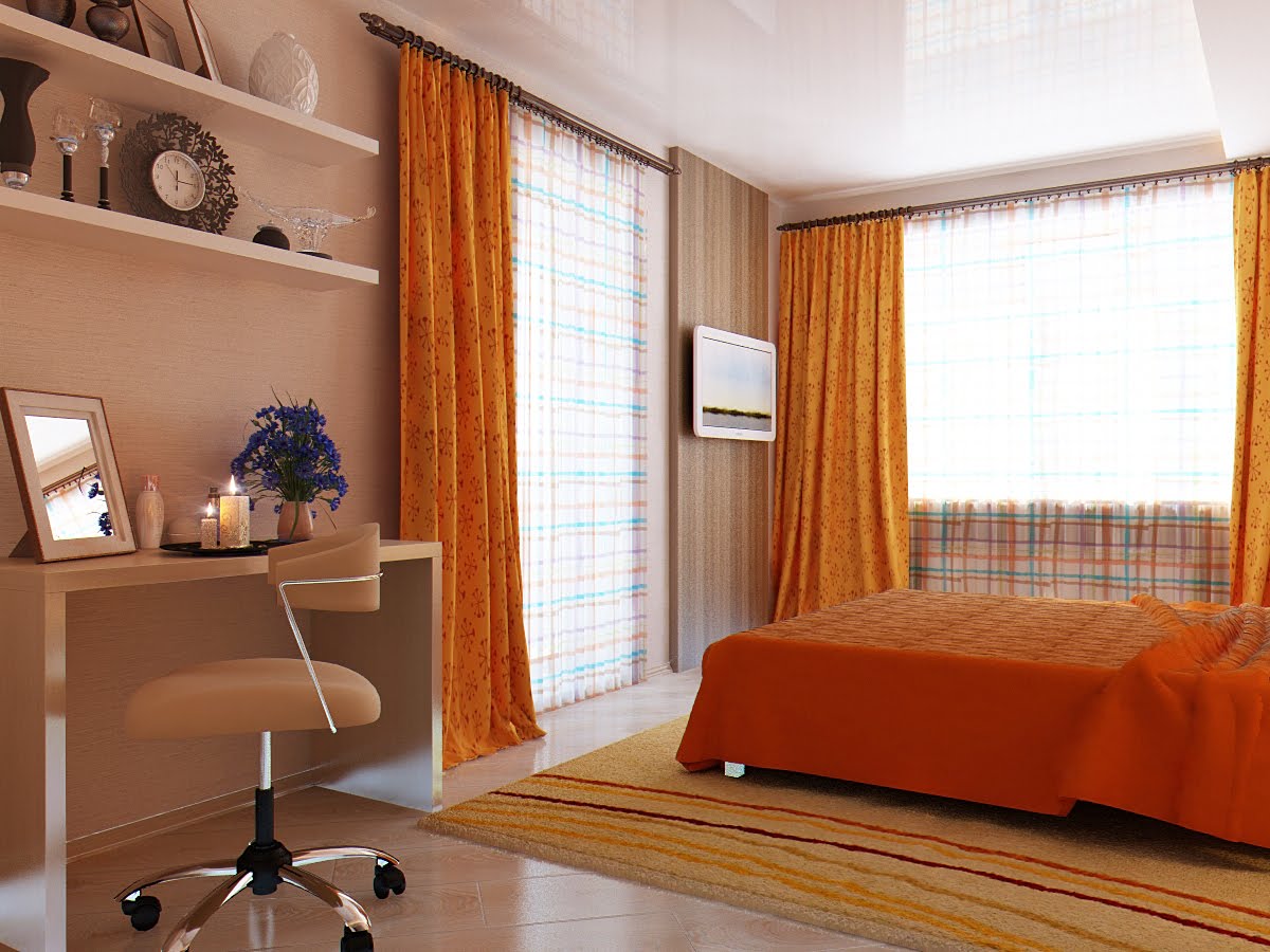 - Rideaux oranges doit être sélectionné pour les murs avec un ton clair ou blanc. Dans ce cas, une certaine énergie sera créée. Il est recommandé de choisir des accessoires de la même teinte pour un endroit aussi lumineux.