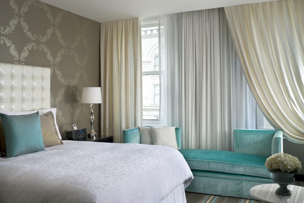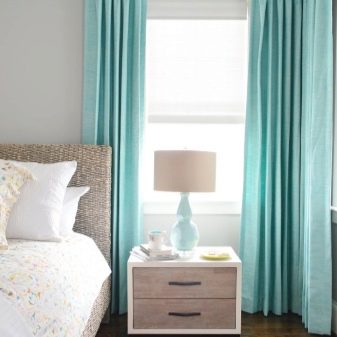 - Les rideaux turquoise peuvent être considérés comme un bon choix : ils peuvent être combinés avec n'importe quelle couleur. D'un point de vue psychologique, cette couleur enlève l'état dépressif, calme, élimine la faiblesse, la fatigue.