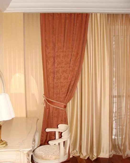 Les rideaux tricolores ou bicolores conviennent à la fois au travail de conception final et à la phase initiale. Si le design d'intérieur est déjà prêt, alors pour la décoration textile des ouvertures de fenêtre, vous pouvez choisir 2-3 couleurs de base.