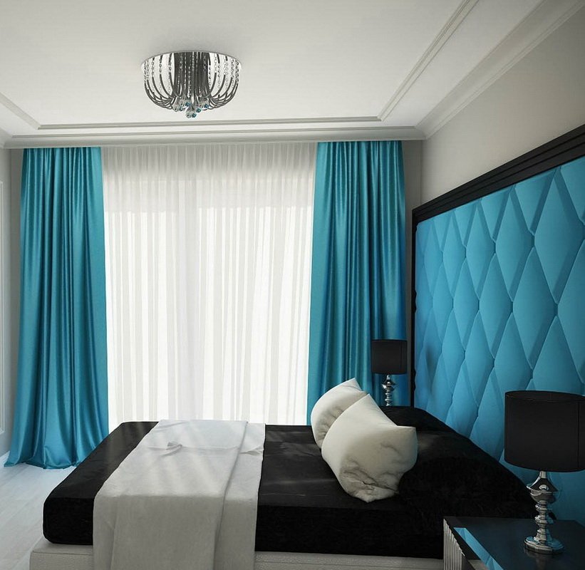- Rideaux bleus créera une ombre dans la pièce et les bleus créeront le calme et la pacification.