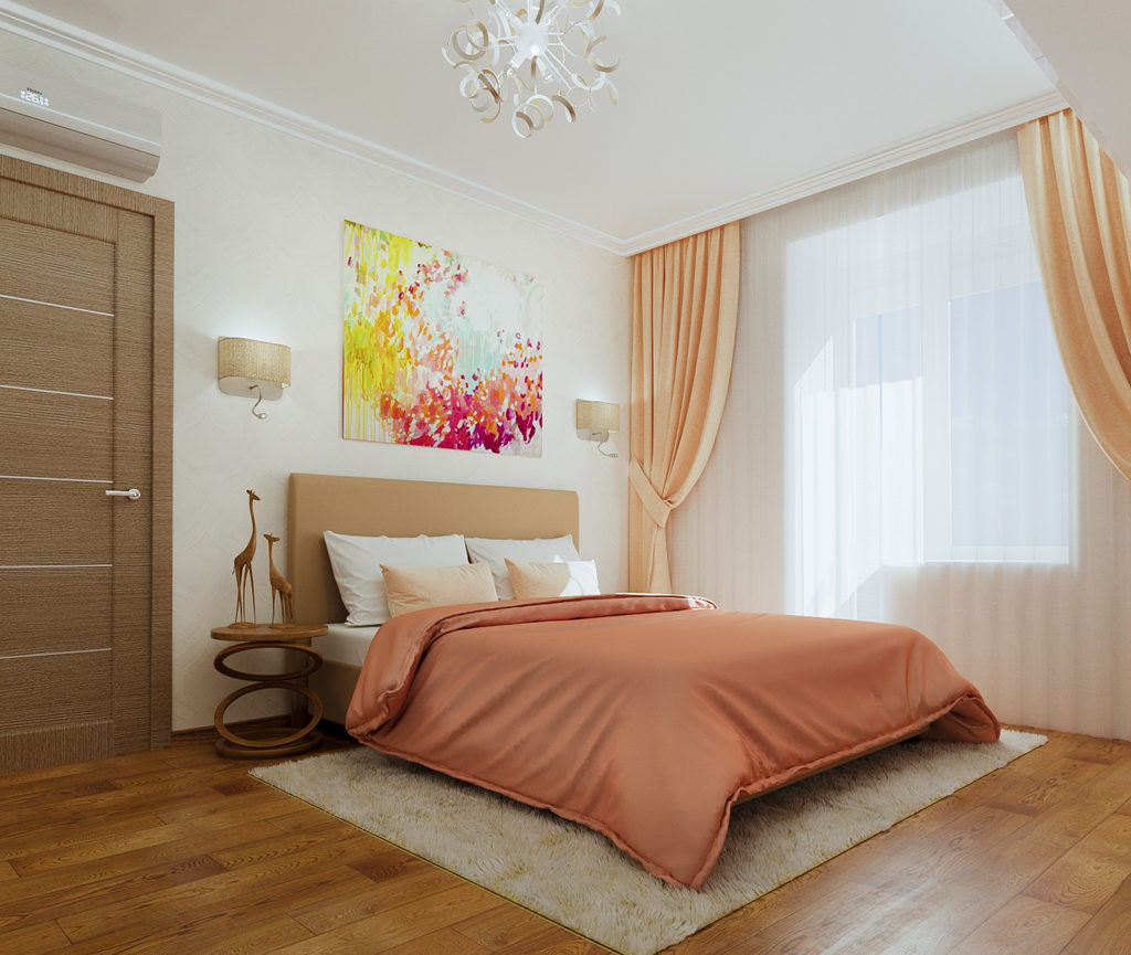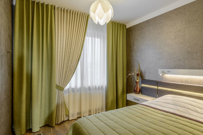Parmi les teintes neutres, il faut souligner les options lumineuses : corail, lait, pastel, pistache. De telles couleurs de rideaux dans la chambre apaisent, apaisent, créent une atmosphère chaleureuse et confortable.