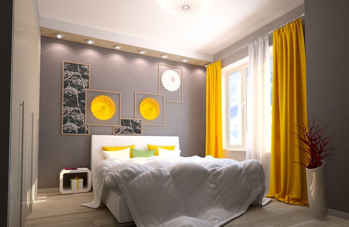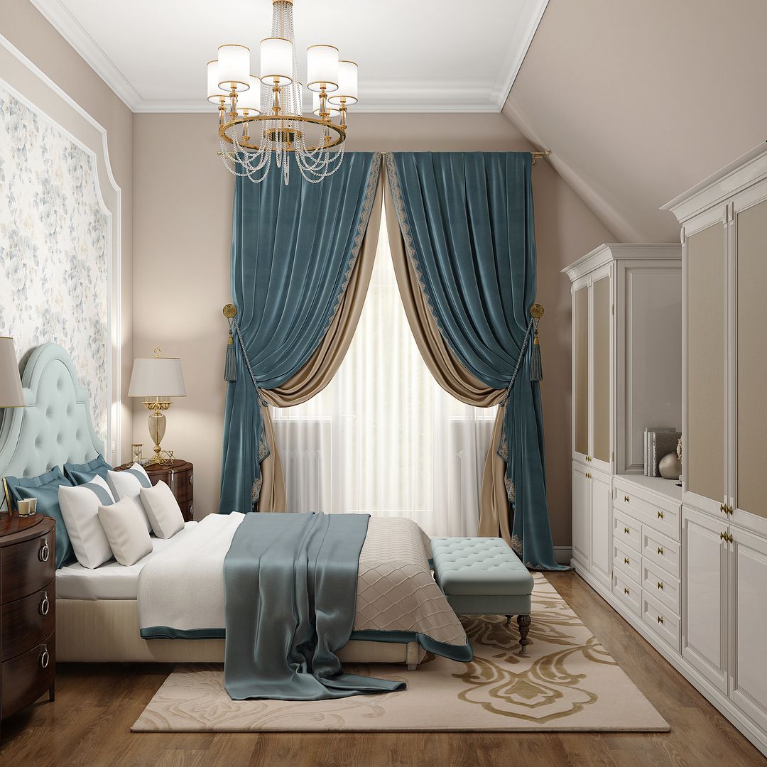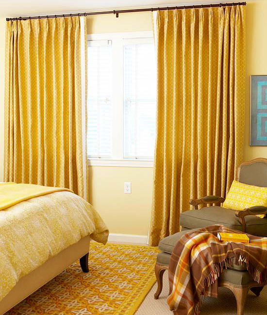 Vous pouvez choisir les rideaux de manière à ce qu'ils soient de couleur assortie au couvre-lit du lit, au rembourrage du canapé et aux coussins décoratifs.