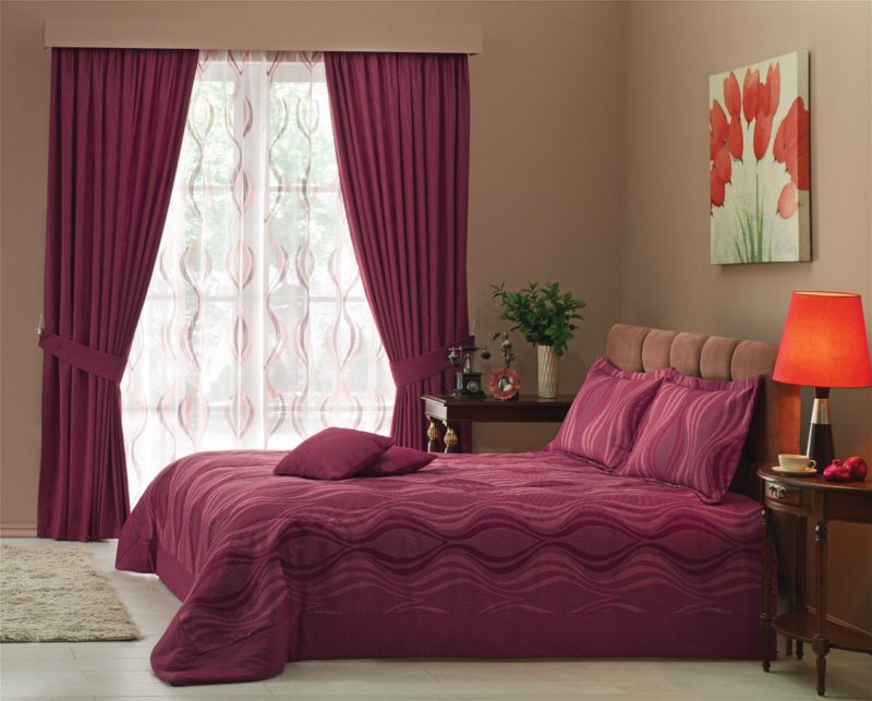 - Rideaux cramoisis donnera à la chambre un confort, offrant à son propriétaire détente et tranquillité.