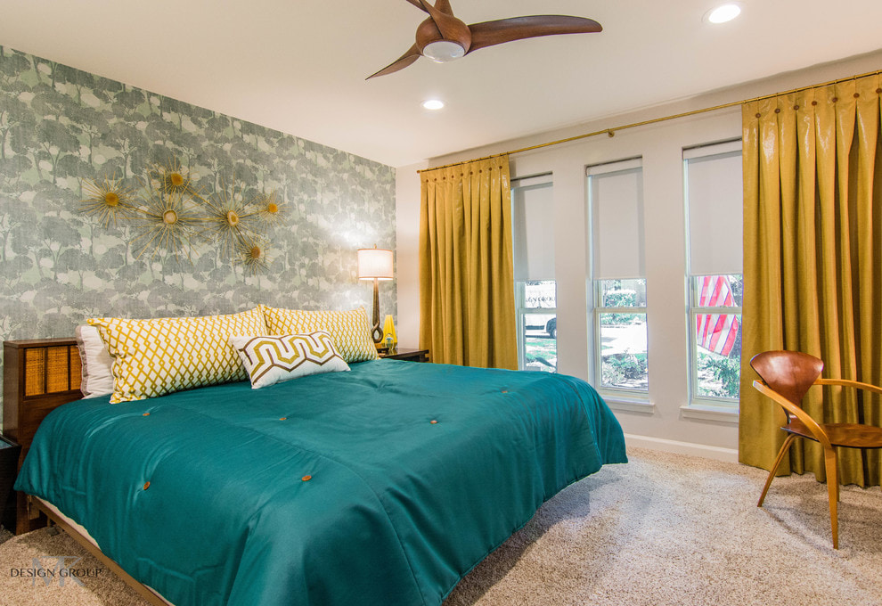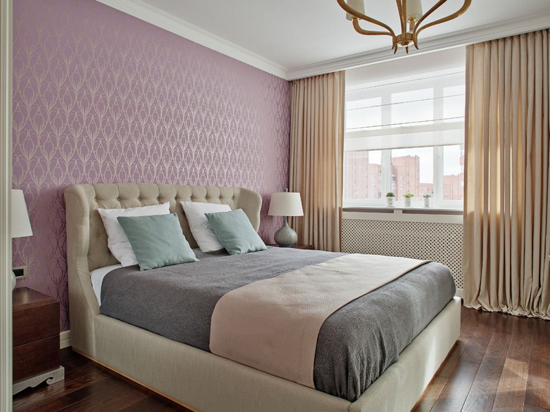 - le papier peint avec les meubles est sélectionné en harmonie générale et les rideaux sont une tache de couleur vive;