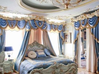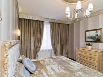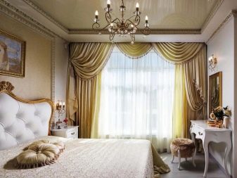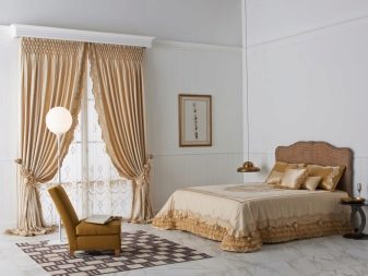 Lorsque vous choisissez des rideaux classiques pour la chambre, vous devez faire attention à la qualité et à la texture des tissus. Si la toile se salit et se froisse rapidement, des plis parallèles expressifs n'en sortiront pas. Il est également important de choisir les bons ornements décoratifs tels que les lambrequins, les poignées, les brosses et les éléments de jarretière. Vous pouvez compléter la composition avec une exquise corniche sculptée ou en stuc.