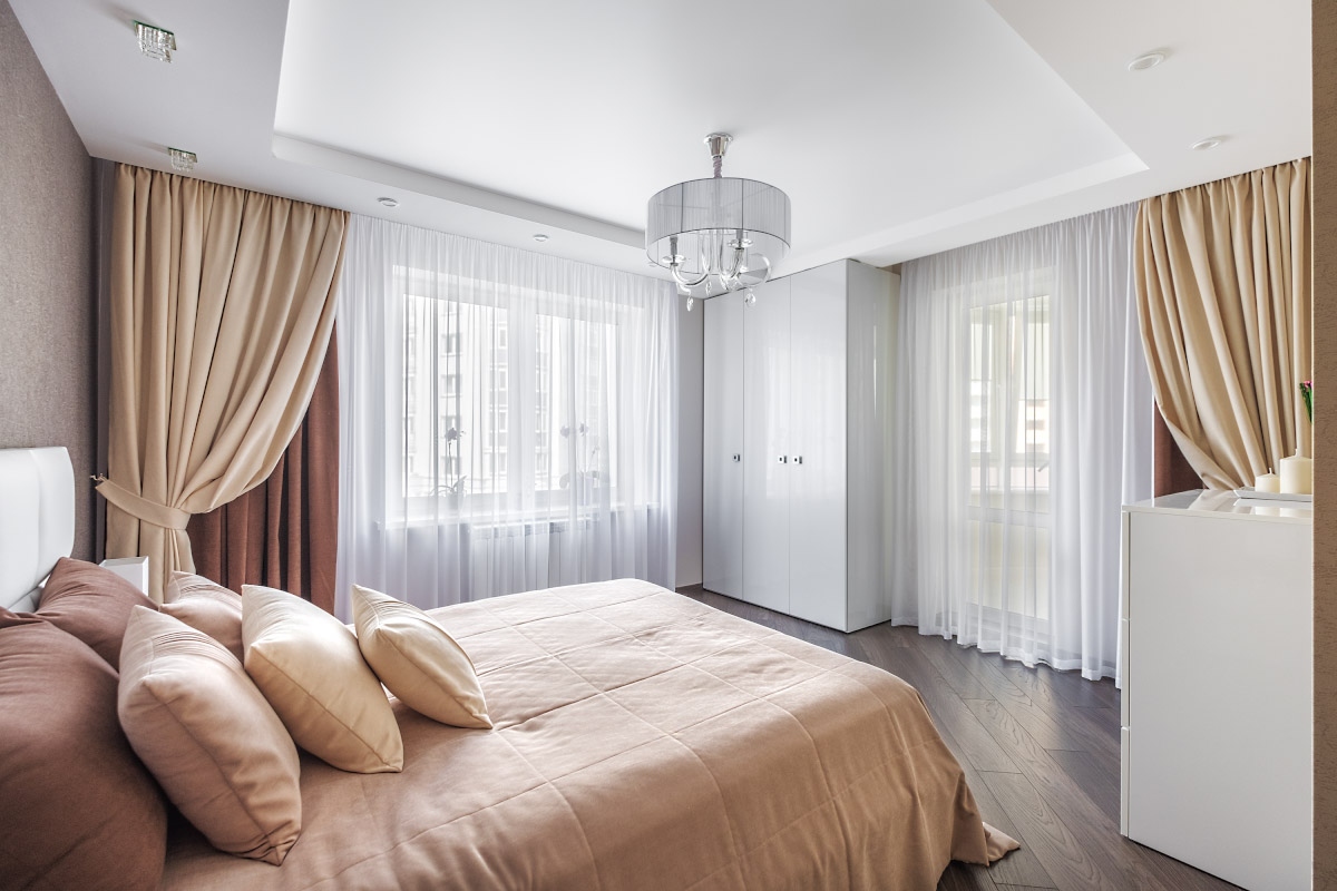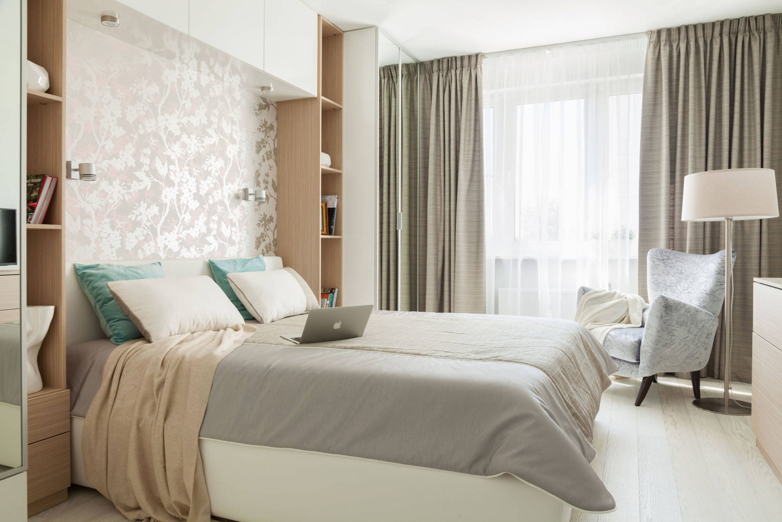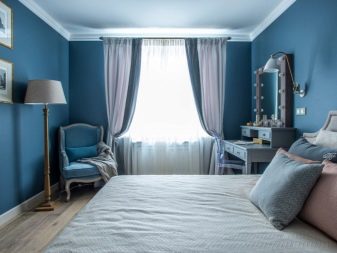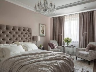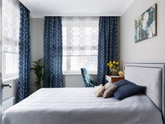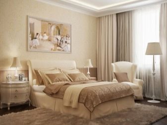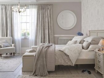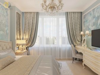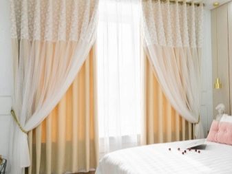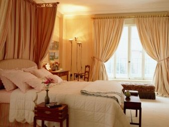 La tâche principale de l'intérieur de la chambre est de créer une atmosphère psychologique calme, sans couleurs vives. La couleur des rideaux doit se chevaucher organiquement avec les teintes principales des murs, des tapis, des meubles rembourrés et des couvre-lits. La douce brillance des rideaux irisés brouille également visuellement les limites de l'espace, mais à ces fins, des textiles légers doivent être utilisés.