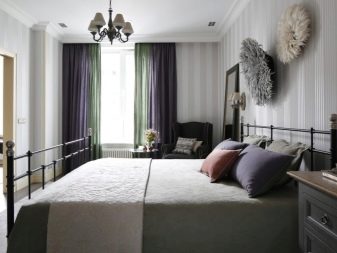 - Pour une palette de couleurs de chambre audacieuse, vous pouvez choisir une combinaison harmonieuse de différentes couleurs, par exemple, un ton lilas chaud complète parfaitement le vert doux.