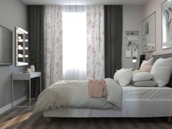 Décorer une chambre avec des rideaux gris peut être considéré comme une nouveauté, inhabituelle pour un intérieur classique, mais différentes nuances de gris ont un effet calmant et relaxant sur une personne, ce qui convient le mieux à la détente. Les rideaux de la pièce peuvent être plus sombres que les murs. Des solutions intéressantes à partir d'un matériau velouté double face, qui, lors de l'ouverture et du nouage des rideaux, crée de beaux plis, tout en montrant sa teinte à l'envers, qui peut être argentée.