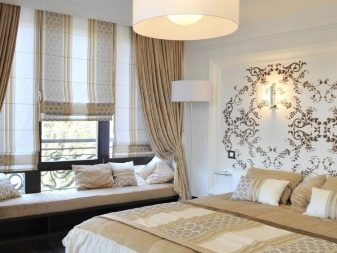 Dans les pièces spacieuses, il y a plus de possibilités d'utiliser à la fois des textiles de rideaux lourds et coûteux et des tons pastel clairs de lin ou de tissus semi-laine. Pour une petite chambre, les rideaux sombres avec une grande quantité de franges et de nombreux plis ne conviennent probablement pas, car ils occuperont visuellement un tiers de la surface s'ils recouvrent tout le mur d'une fenêtre.