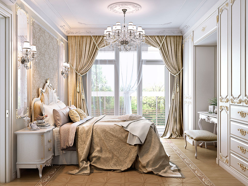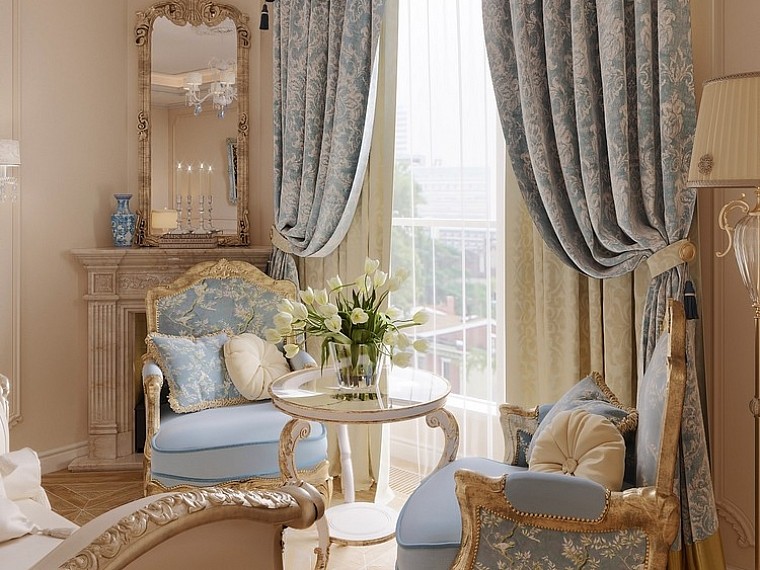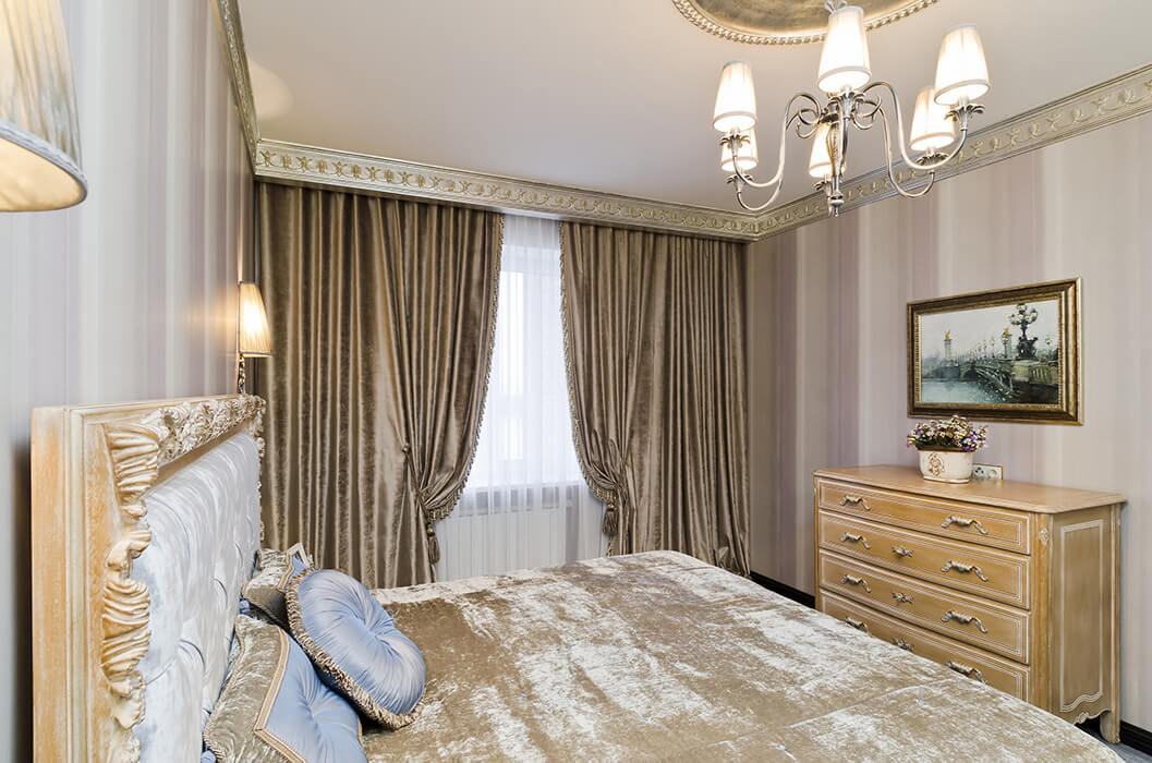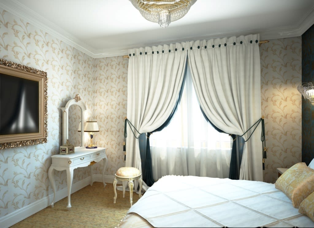Lorsque vous achetez des rideaux pour une chambre de style classique, vous devez savoir que les couleurs claires agrandiront visuellement la pièce, tandis que les couleurs chaudes et riches, au contraire, réduiront l'espace.
