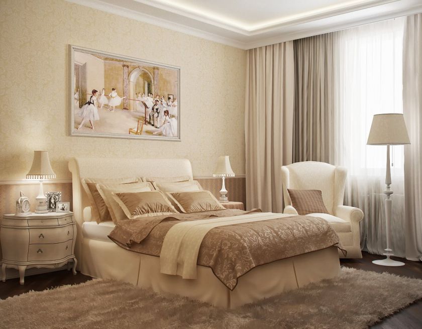 Dans le salon, la couleur du lait cuit conviendra, ainsi que des nuances épaisses de couleurs beige, crème, rose foncé et moutarde.