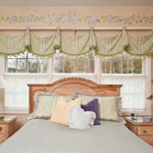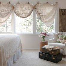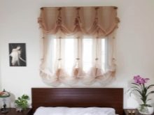 L'un des types de rideaux courts est le rideau français, on l'appelle aussi "marquise". Ils ressemblent à une structure de levage en cascade, ce qui confère à la pièce un faste particulier. De tels modèles ont l'air très élégants et riches, ils ne peuvent donc pas s'intégrer dans tous les intérieurs. Cette option est plus adaptée aux chambres décorées dans le style baroque. La présence de figurines fantaisistes complétera favorablement l'intérieur.
