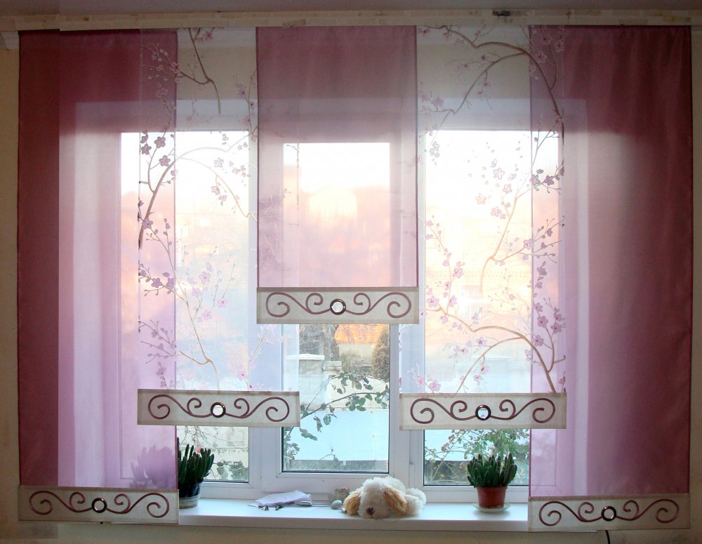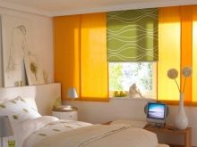 Ce type de rideau est tout à fait approprié dans la chambre. L'utilisation de rideaux japonais vous permet d'expérimenter différentes combinaisons de couleurs et de motifs. Contrairement à d'autres options, de tels rideaux ne surchargeront pas la chambre, mais la décoreront harmonieusement. Les avantages de cette option incluent la possibilité de contrôler la lumière naturelle dans la pièce.