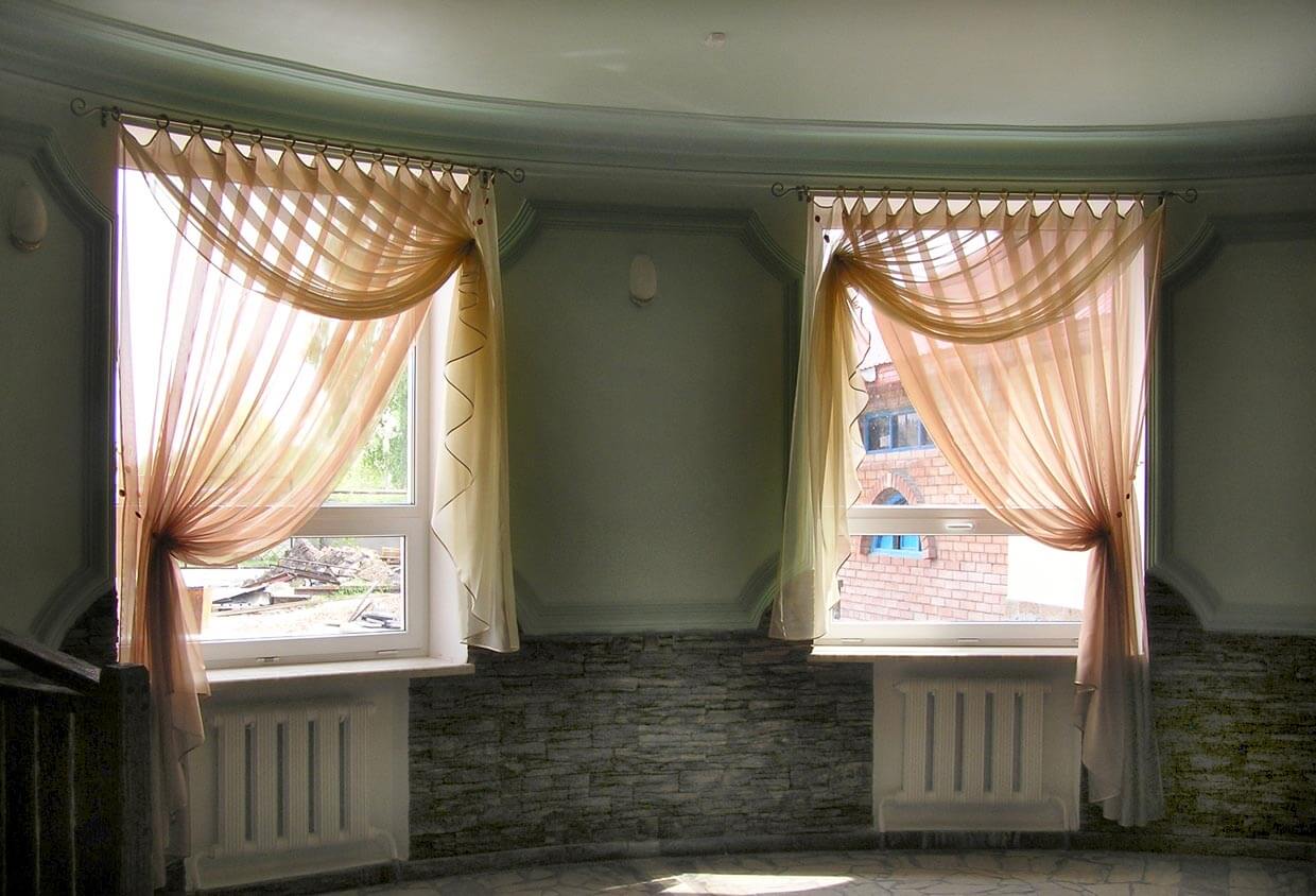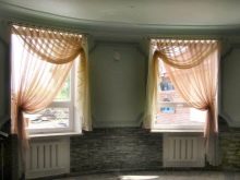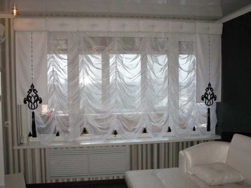 Les rideaux avec des rideaux en tulle sont préférables pour les pièces très spacieuses.
