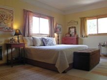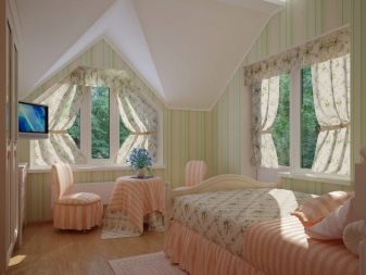 Il est préférable de choisir une toile à pois pour une chambre décorée dans un style rustique. Les options raccourcies sont mieux choisies dans des tons plus calmes. Les teintes sombres peuvent étouffer un espace, tandis que les rideaux clairs peuvent égayer une chambre.