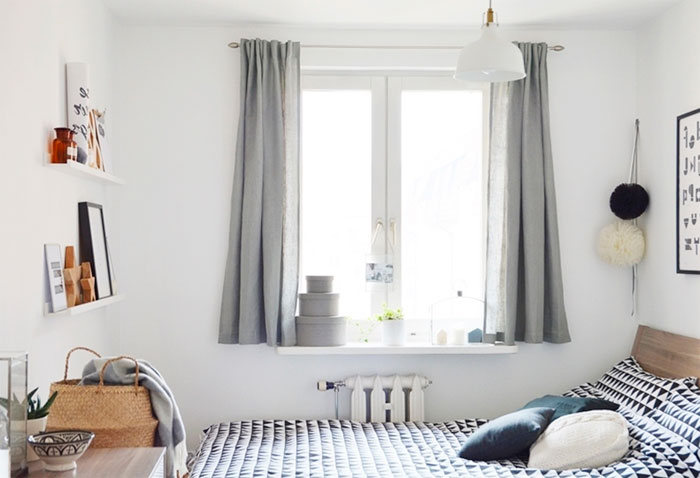 Les rideaux coupés droits auront fière allure dans une petite chambre.