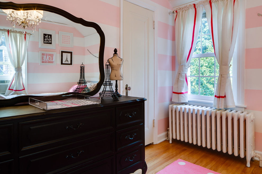 Un court rideau dans la chambre sera inapproprié s'il y a un vieux radiateur, qu'il est souhaitable de cacher des regards indiscrets.