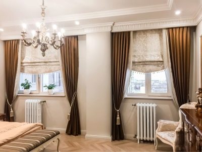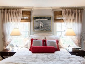 S'il y a plusieurs fenêtres dans la chambre ou si elles sont doublées, il serait alors conseillé d'acheter non pas le même type, mais des rideaux différents, mais de même texture.