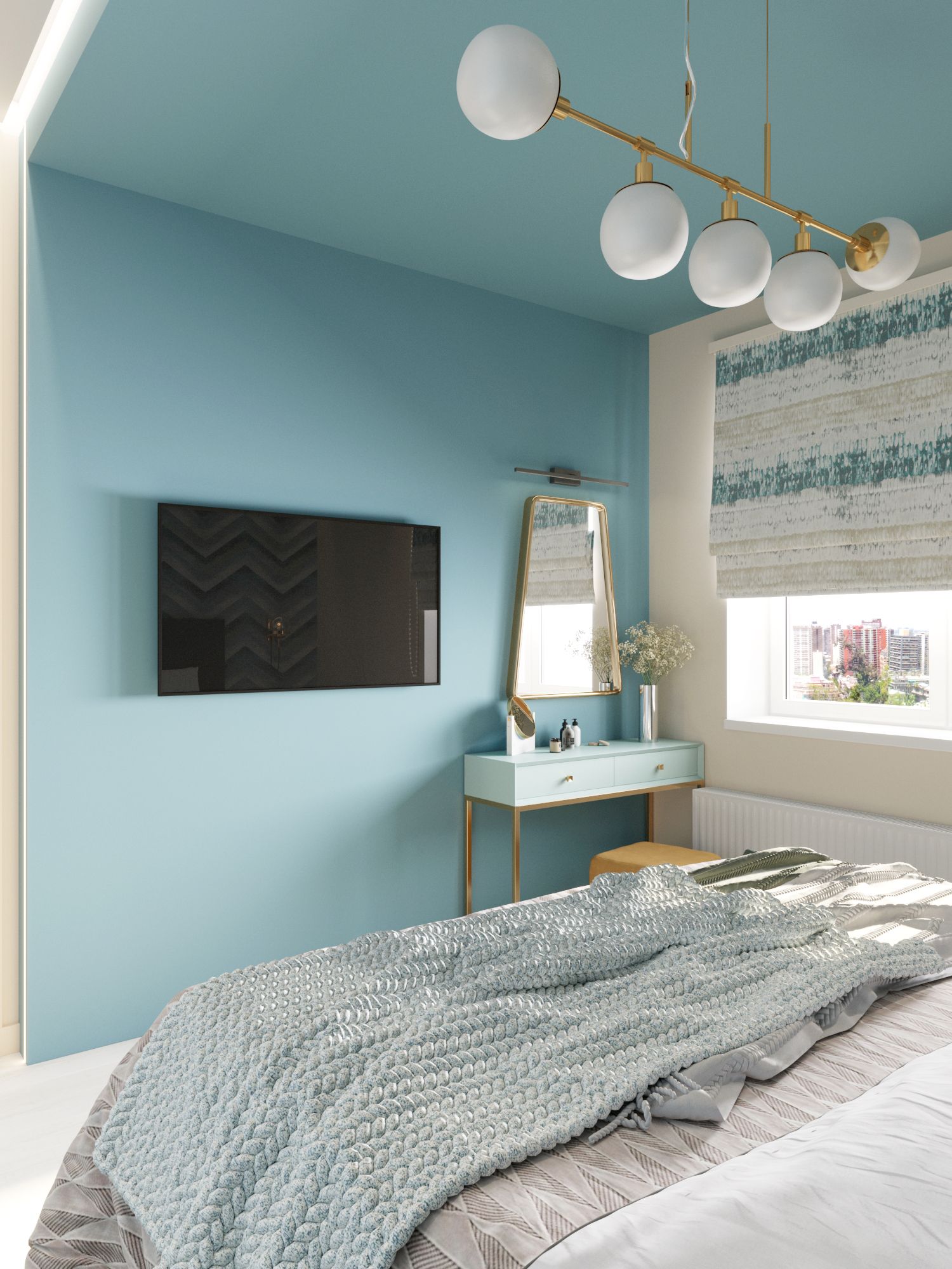 Mais la couleur bleu vif accentue l'attention, mais crée en même temps une atmosphère apaisante dans la pièce.