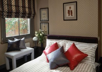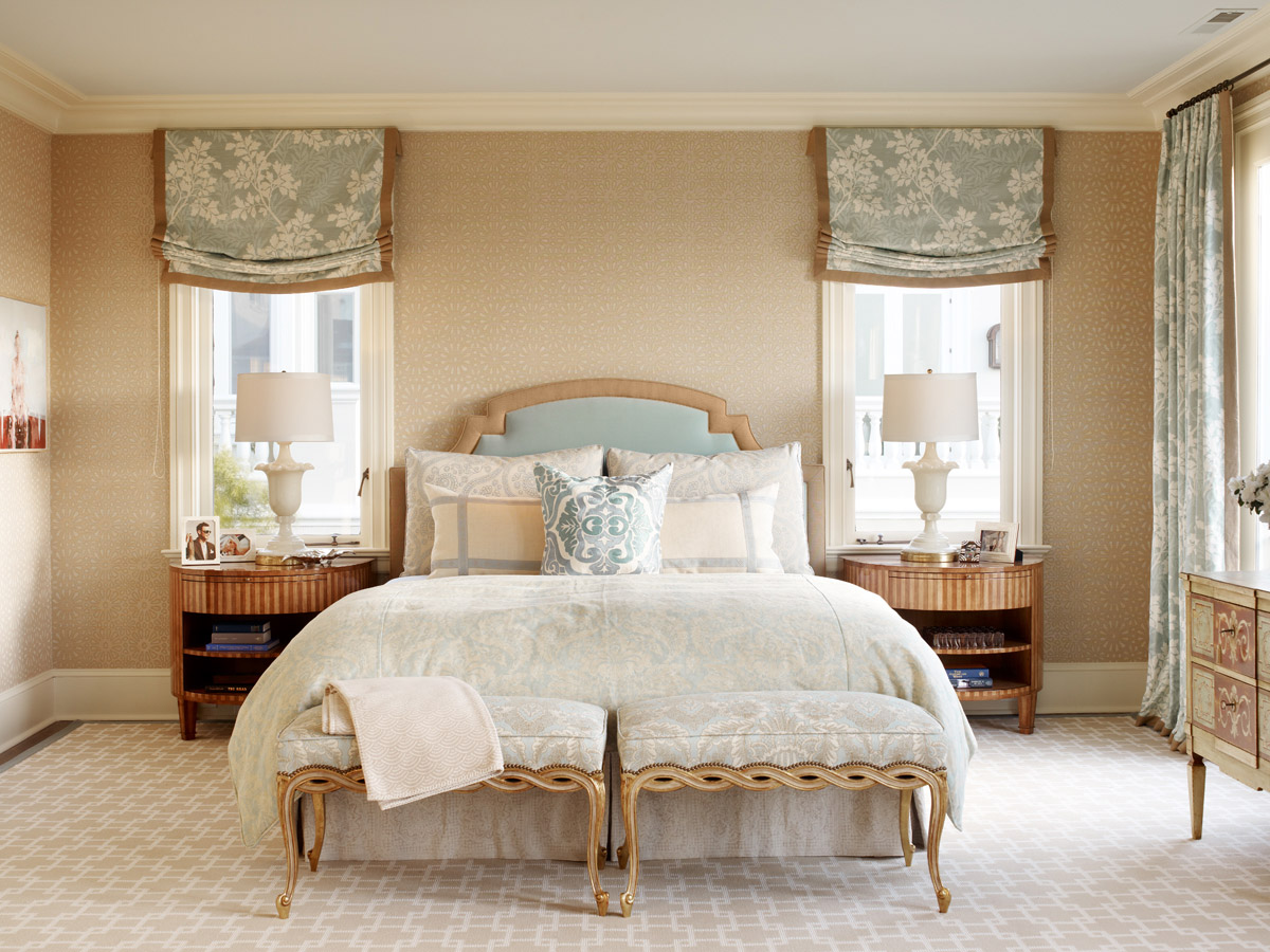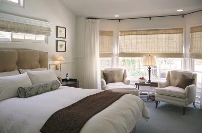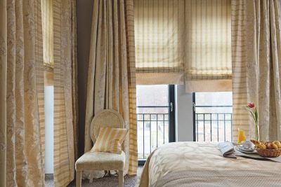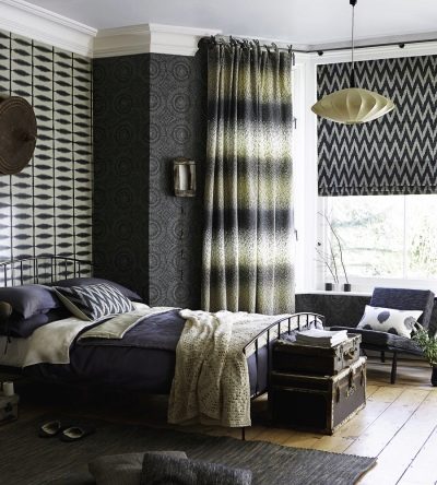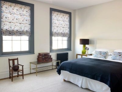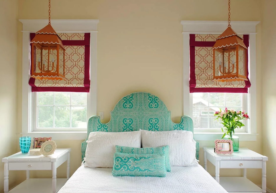 - Parfois, la fenêtre de la chambre est juste à la tête du lit. Alors les stores romains sont ce qu'il vous faut. Ils détournent les courants d'air vers le sol et créent également l'effet de l'absence de fenêtre dans la pièce. De plus, cette solution renforce « l'effet de la troisième couleur ».