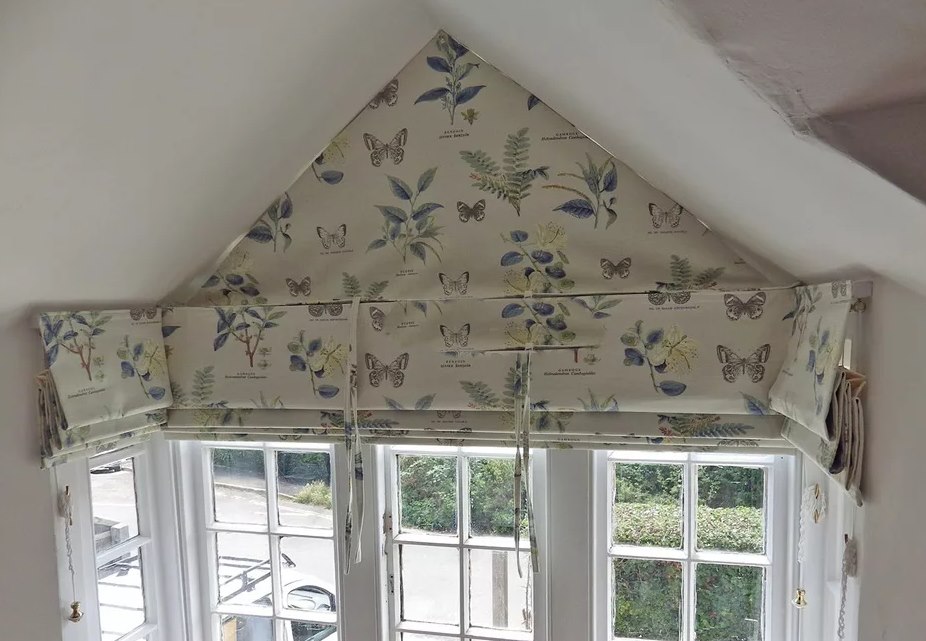 La pratique des fenêtres de type sur mesure se retrouve le plus souvent chez les particuliers. Dans ces cas, les rideaux romains ne feront que souligner le design inhabituel. Voici quelques exemples de décoration de fenêtres personnalisées avec de tels rideaux.