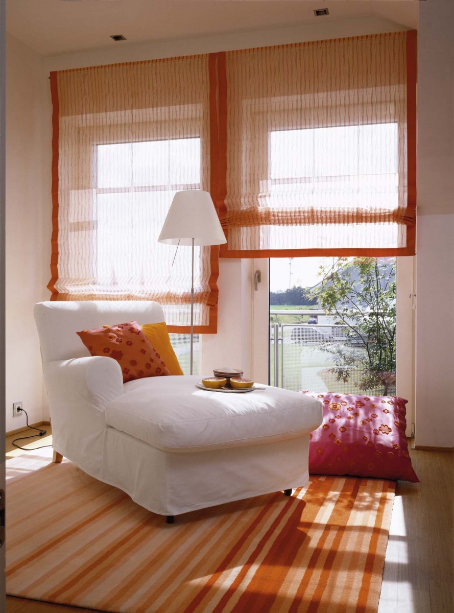 Il y a des chambres où les fenêtres sont situées de sorte que les longs rideaux lourds ou même le tulle léger sont tout simplement inappropriés. Et ici, les stores romains viennent à la rescousse. Ils s'intègrent parfaitement dans n'importe quel style d'intérieur et économisent de l'espace sans surcharger la pièce.
