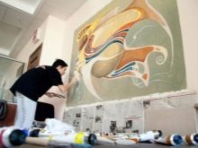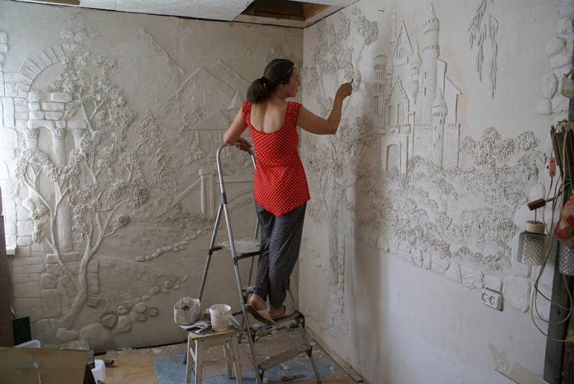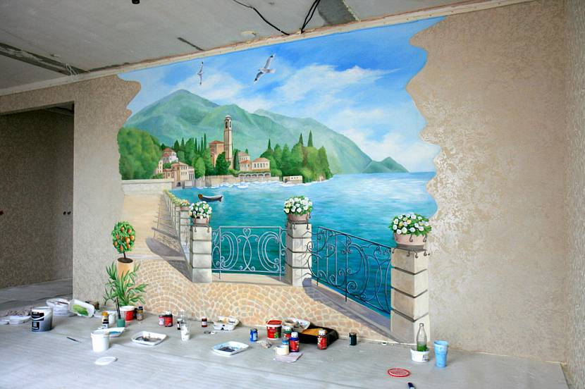 - Tout d'abord, il faut mentionner l'ancêtre de toutes les techniques modernes pour l'exécution des fresques. – sur l'application de l'image à la main sur du plâtre brut. Bien sûr, de nos jours, personne ne le fait rarement, en raison du coût élevé et de la pénibilité de la méthode. Cependant, de telles fresques peuvent être trouvées dans des maisons d'élite.