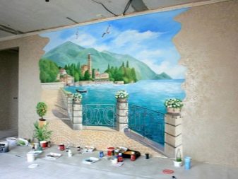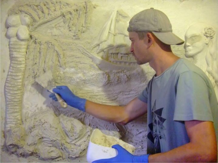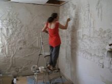 Le plâtre est préparé selon une recette spéciale. Ensuite, une image lui est appliquée, après quoi elle est vieillie artificiellement. Et ce n'est qu'alors que la peinture est transférée sur la toile, où elle est traitée avec un composé protecteur contenant de la cire. Une telle fresque est collée au mur avec de la colle à papier peint.