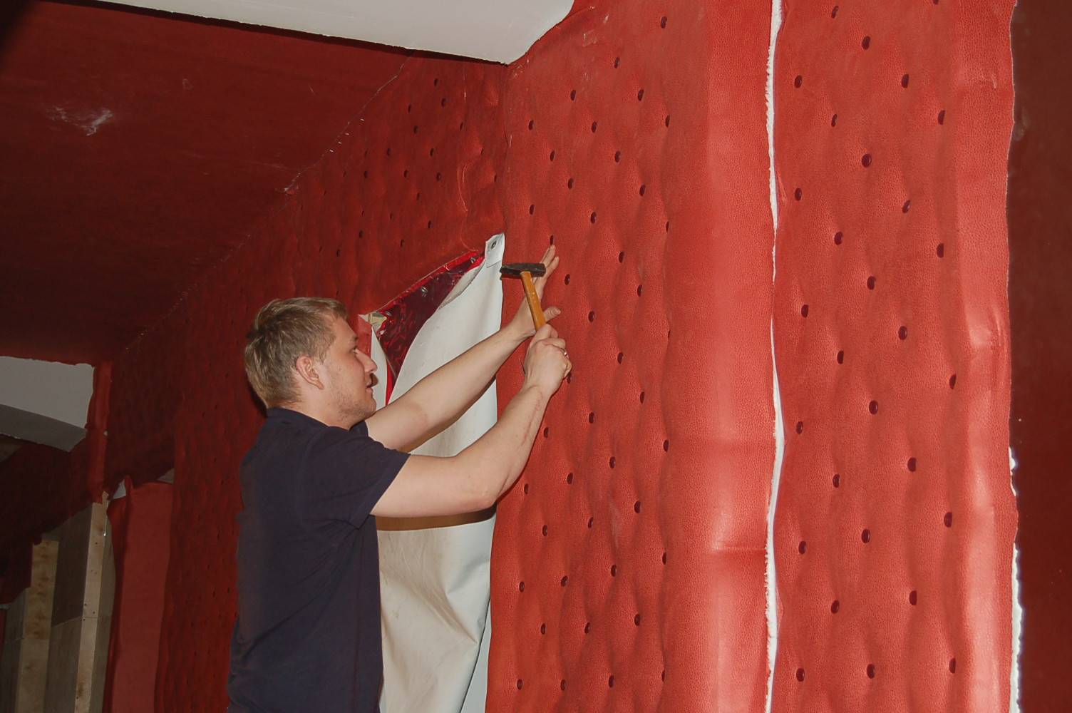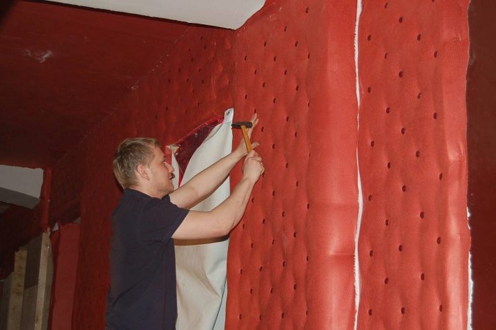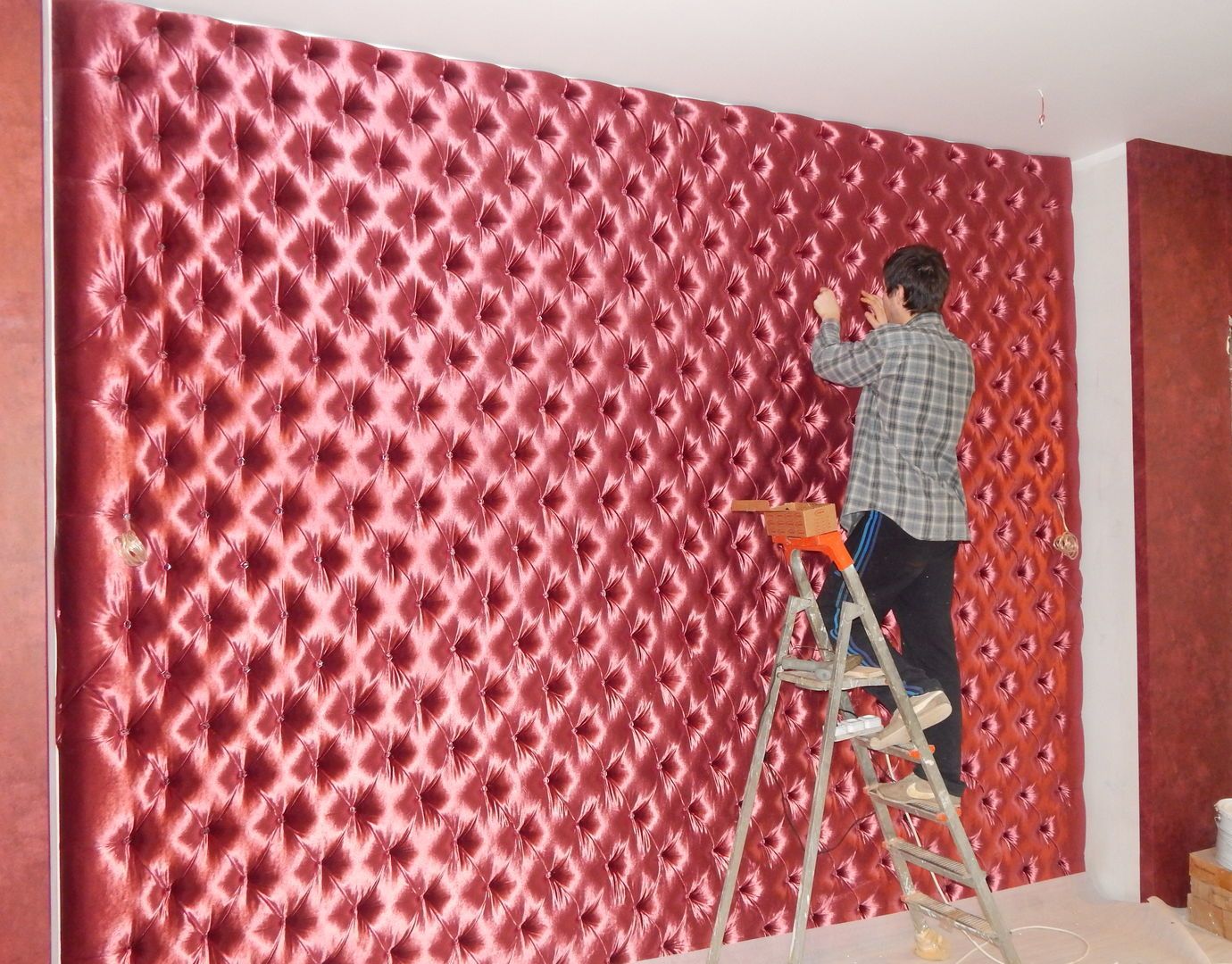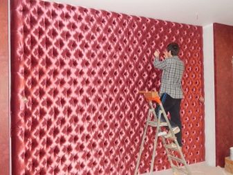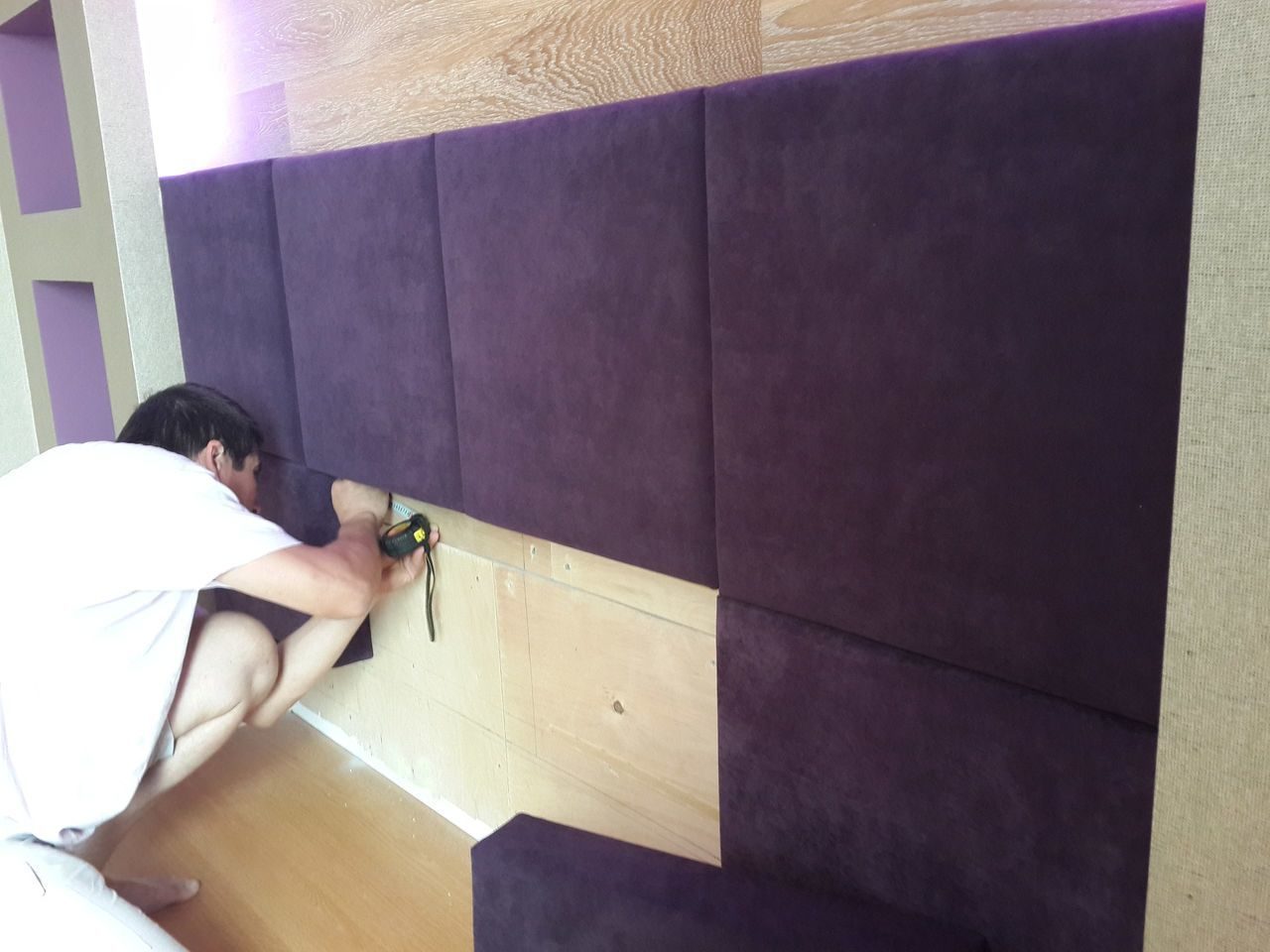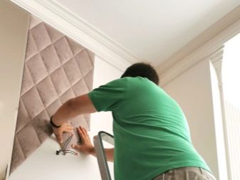 La deuxième méthode de fixation des panneaux souples implique l'utilisation d'un cadre. Pour cela, une installation de cadre avec une structure alvéolaire est placée sur le mur. Il peut être fait de lattes de bois et fixé avec des chevilles. Après cela, la cellule est remplie de mousse ou de rembourrage en polyester, qui est fixée avec une agrafeuse. Après cela, le matériau est étiré uniformément, qui sera ensuite fixé sur les côtés et le bas de la structure. Les chevilles et les agrafes peuvent être cachées avec du ruban décoratif.
