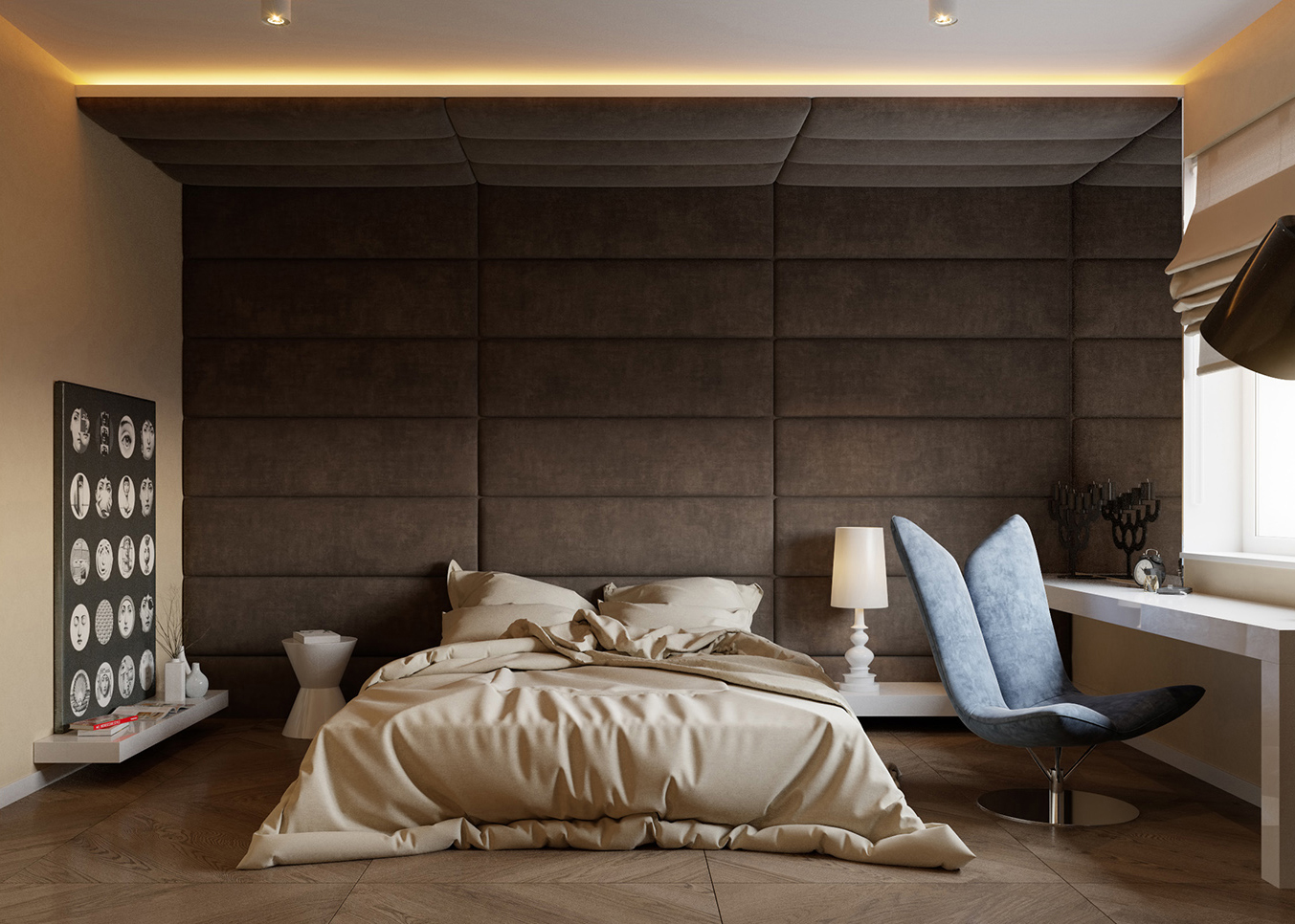 Les panneaux muraux souples pour la chambre à coucher vous permettront de créer un design original et de réduire considérablement la pénétration du bruit dans la pièce. Ce matériau décoratif ajoutera du confort à l'espace de n'importe quelle pièce.