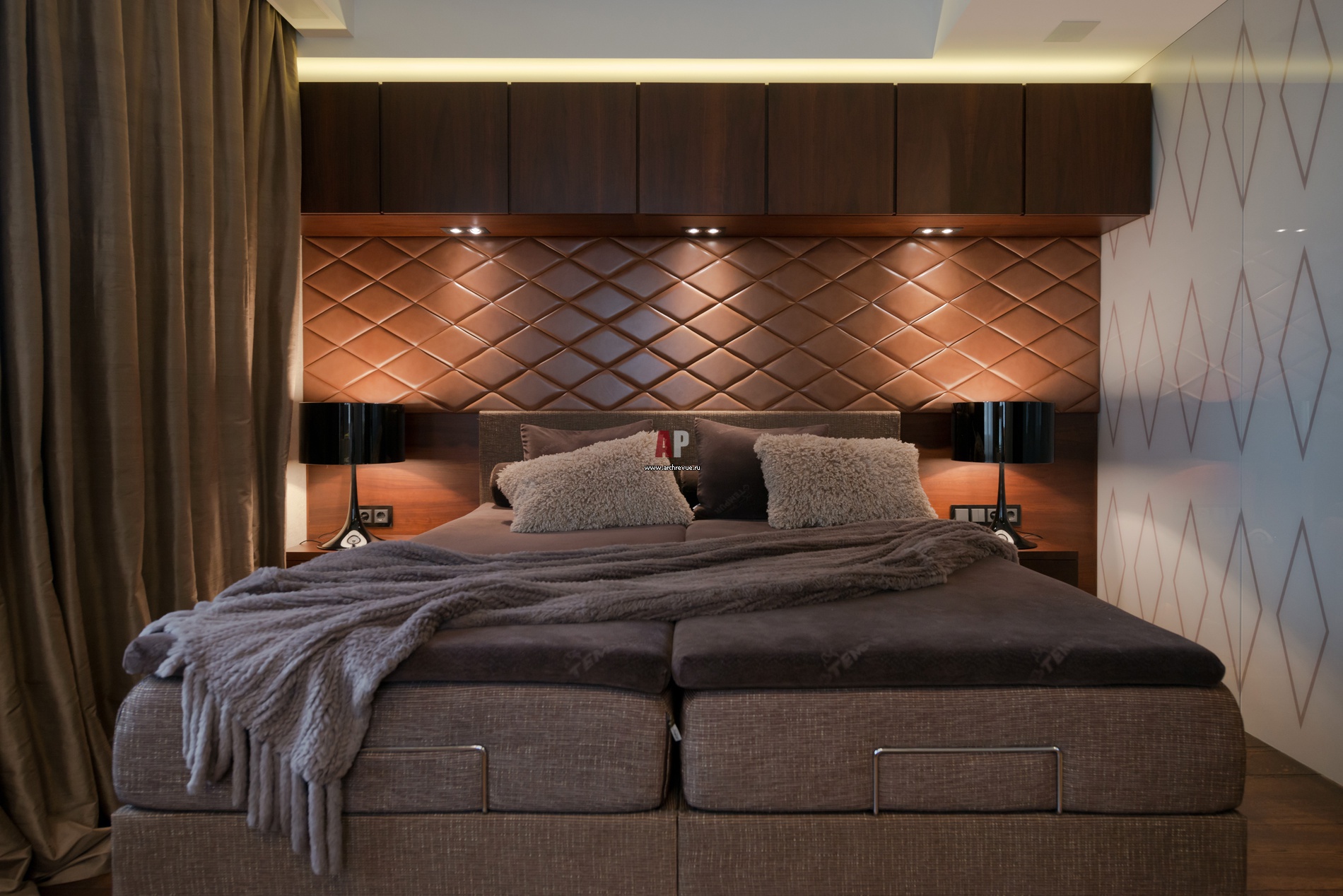 - Fonctionnalité chambre à coucher vous permet d'impressionner ceux qui visitent l'appartement ou la maison. L'utilisation de panneaux décoratifs doux aux couleurs sobres vous permet de créer un sentiment de sécurité et d'indépendance par rapport à l'agitation de la rue et de soulager le stress après une journée de travail.