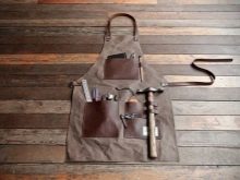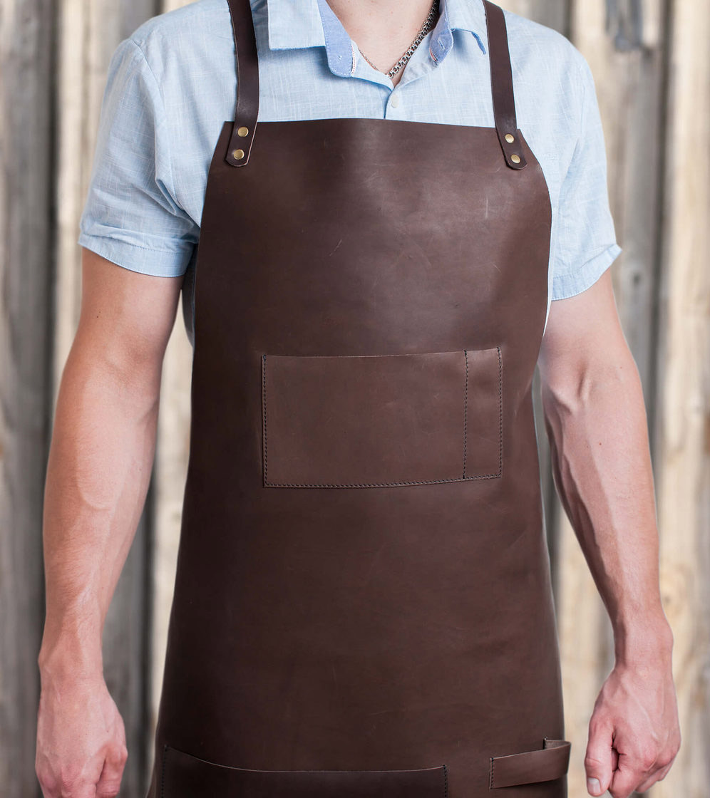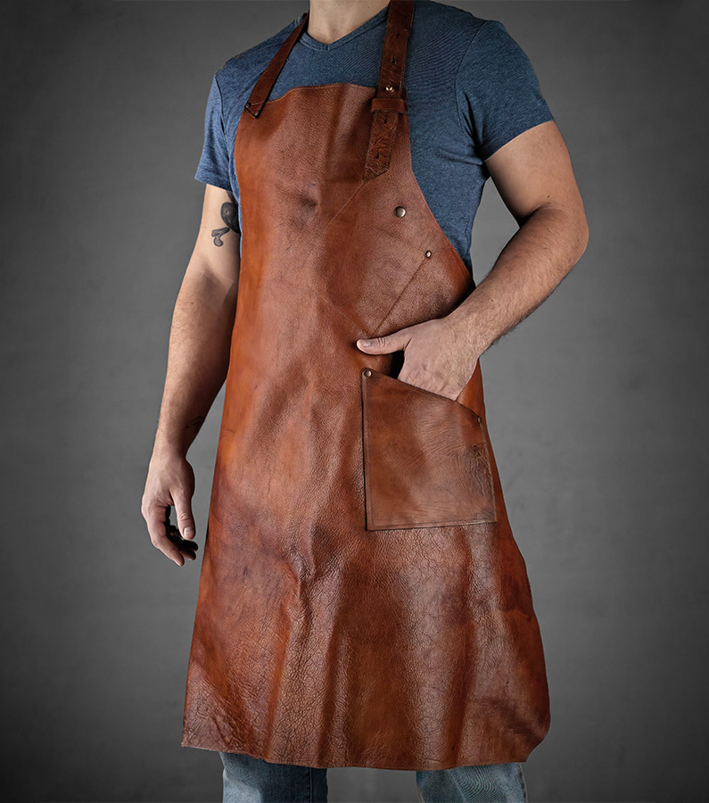 - Cuir. C'est à la fois un accessoire élégant et une excellente protection.Parfait pour les cordonniers, les forgerons ou les menuisiers.