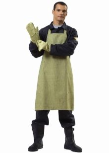 - Bâche imprégnée d'un composé spécial. En termes de caractéristiques, il s'apparente à de simples tabliers en bâche. La seule différence est que l'imprégnation augmente la résistance au feu et la protection contre les projections de chaleur.