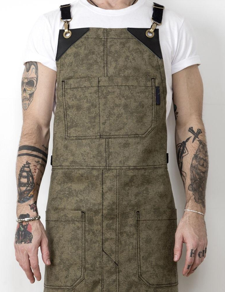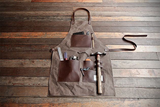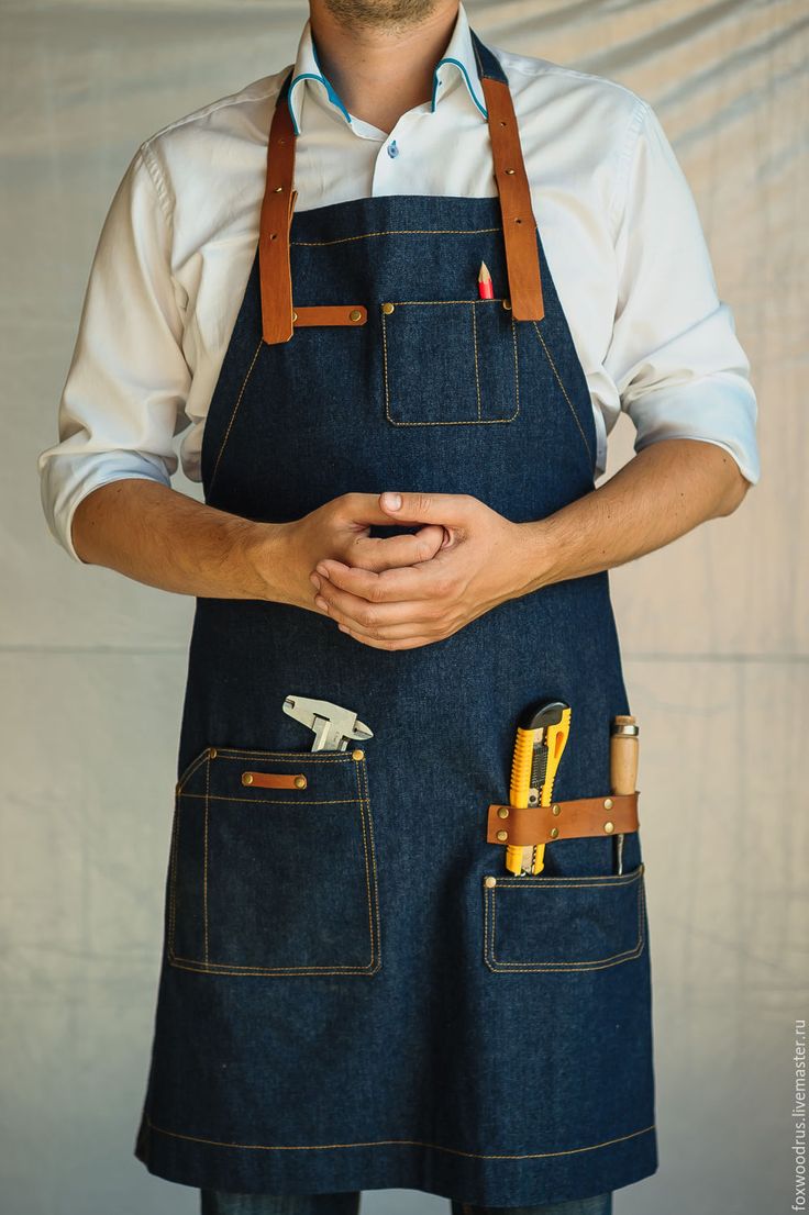 Beaucoup de poches sur les tabliers sont encouragées, mais pas toujours nécessaires. Ces modèles masculins sont principalement utilisés dans les ateliers de menuiserie afin que les outils nécessaires soient toujours à portée de main.