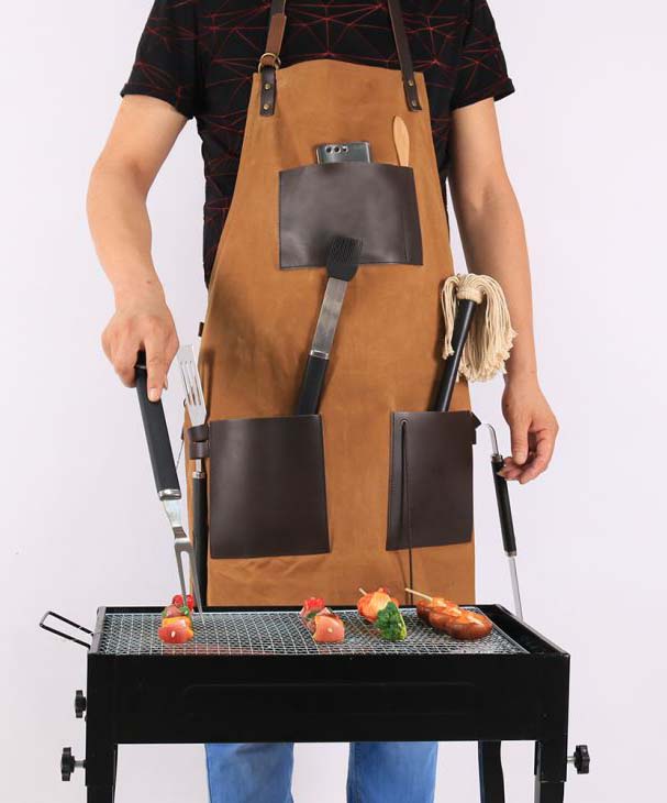 Pour coudre les tabliers, les fabricants utilisent divers matériaux : cuir, croûte moins chère, bâche et même daim naturel. Chacun de ces matériaux a ses propres avantages et inconvénients.