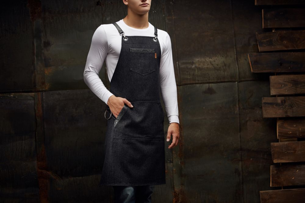 Les tabliers en jean sont une solution intéressante. Le denim résiste parfaitement aux lavages répétés, est assez dense, mais en même temps il est parfaitement respirant. Un autre avantage - les tabliers en jean sont élégants, protègent bien les vêtements.