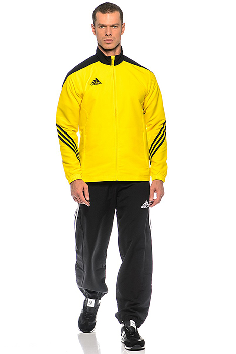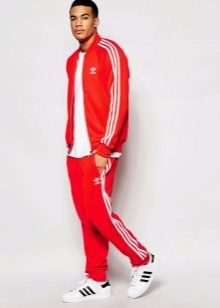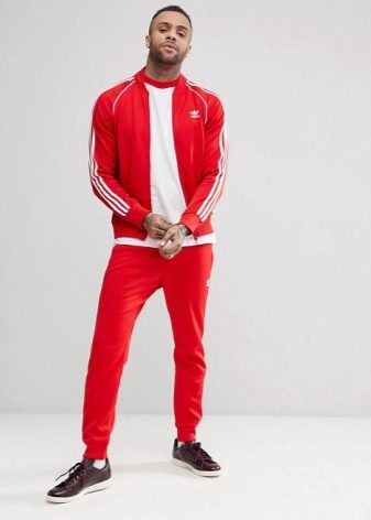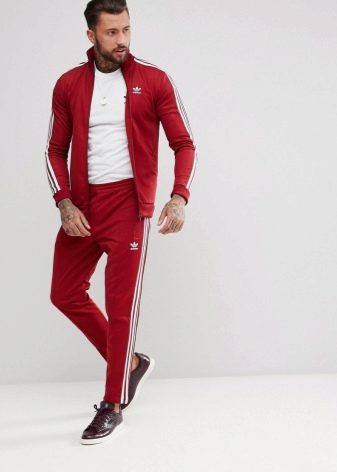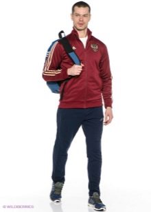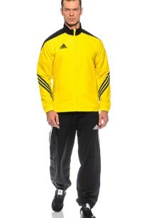 Les costumes Adidas peuvent être non seulement unis, mais aussi combinés : veste bordeaux, rouge ou jaune et pantalon noir.