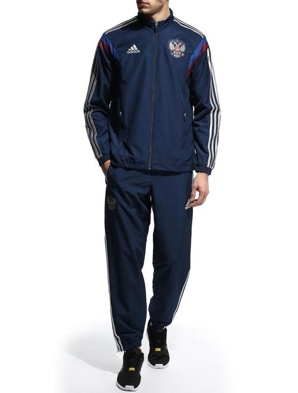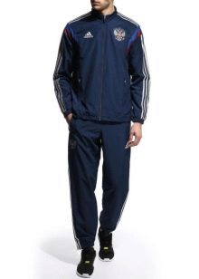 En Russie, les combinaisons Adidas sont également utilisées pour équiper les équipes nationales. Ces costumes, en plus des logos d'entreprise, ont des symboles nationaux - les armoiries de la Russie.