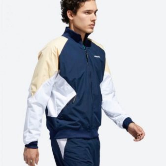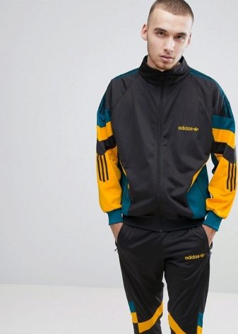 - Ancien. Les modèles se caractérisent par un style rétro, à la mode dans les années 90, et se composent d'un pantalon ample à revers et d'un coupe-vent. Les costumes sont peints dans des couleurs vives, ont des rayures accrocheuses et un minimum de détails de conception.