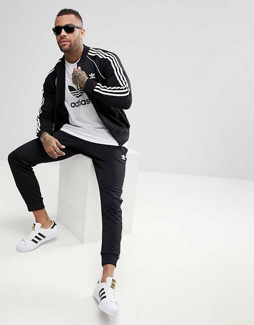 Le costume classique est toujours en demande et constitue une partie importante de la direction Originals. Ces produits se composent d'un bomber ou d'un sweat-shirt et d'un pantalon droit. Originals a ces lignes.