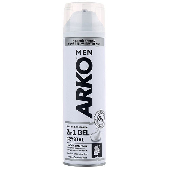 Le gel à raser Arko Men n'est pas moins populaire que la mousse. Le gel a une consistance plus dense pour aider à réduire la consommation de produit et offrir une glisse plus douce. Les gels de rasage sont également présentés en plusieurs types, qui doivent être sélectionnés individuellement en fonction des caractéristiques de la peau.