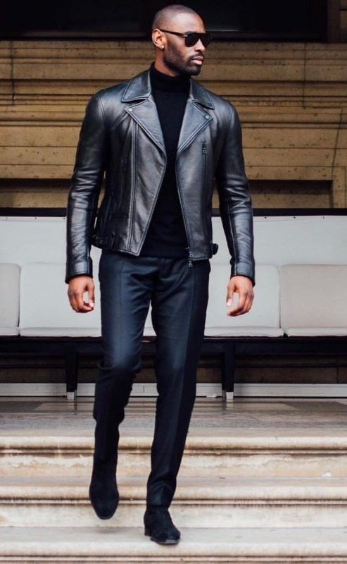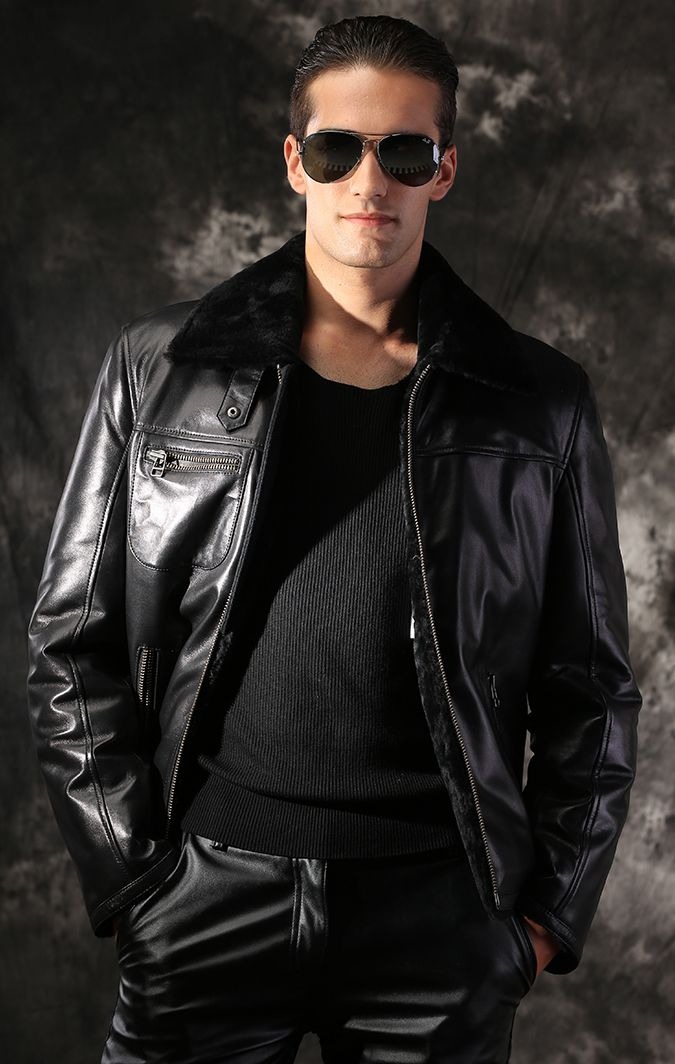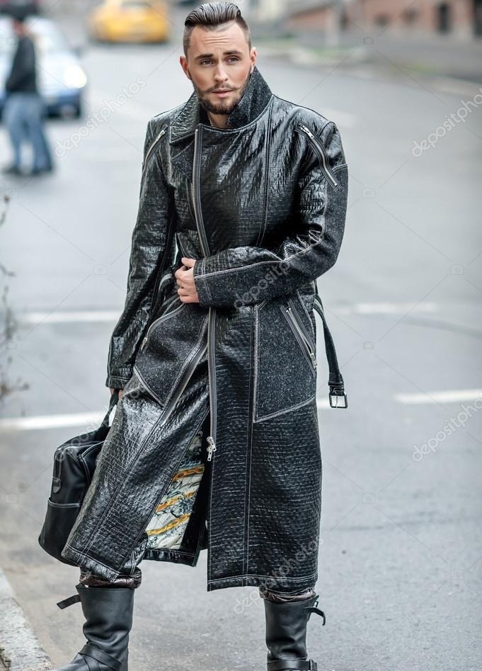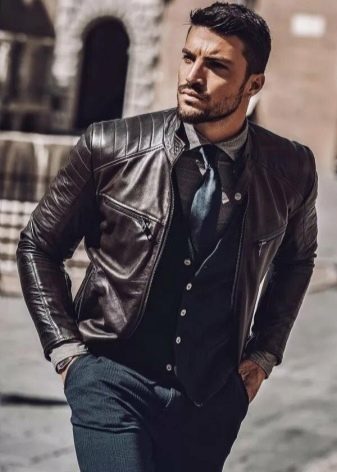 - vestes en cuir courtes ou les mêmes longs imperméables;