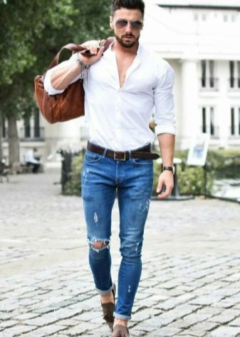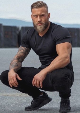 Devenir brutal n'est pas aussi facile qu'il y paraît. Une image attrayante est composée d'une impression globale, qui comprend la propreté, la netteté, le parfum avec des notes de tabac et de cuir, des agrumes légers, des aiguilles de pin et du musc légèrement perceptible. Les jeans longs de coupe ample mais pas ample ne doivent pas montrer de chaussettes, mais si cela se produit, ils ne peuvent pas être avec des cœurs ou des pois, une couleur féminine brillante.