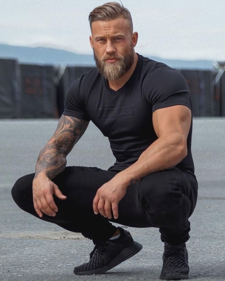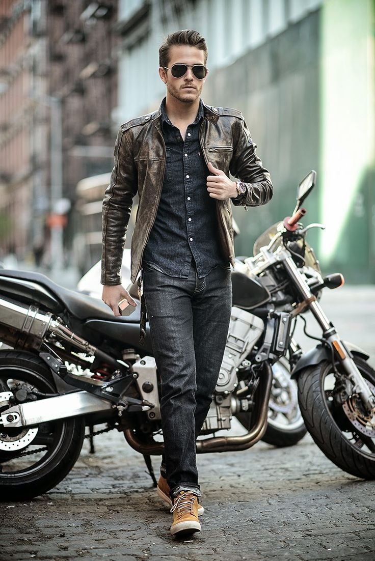 Lorsque vous créez le look d'un homme brutal, vous devez vous fier à 4 principes de base : cuir, métal, tissus naturels, accessoires bruts mais coûteux. Ce dernier ne doit pas être galvaudé - une ceinture et une montre ou une ceinture et un sac suffisent. C'est un style vraiment masculin, donc les vêtements ne limitent pas les mouvements, mais ne pendent pas non plus dans un sac.