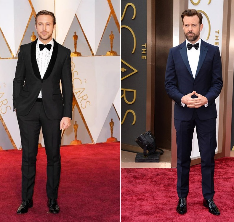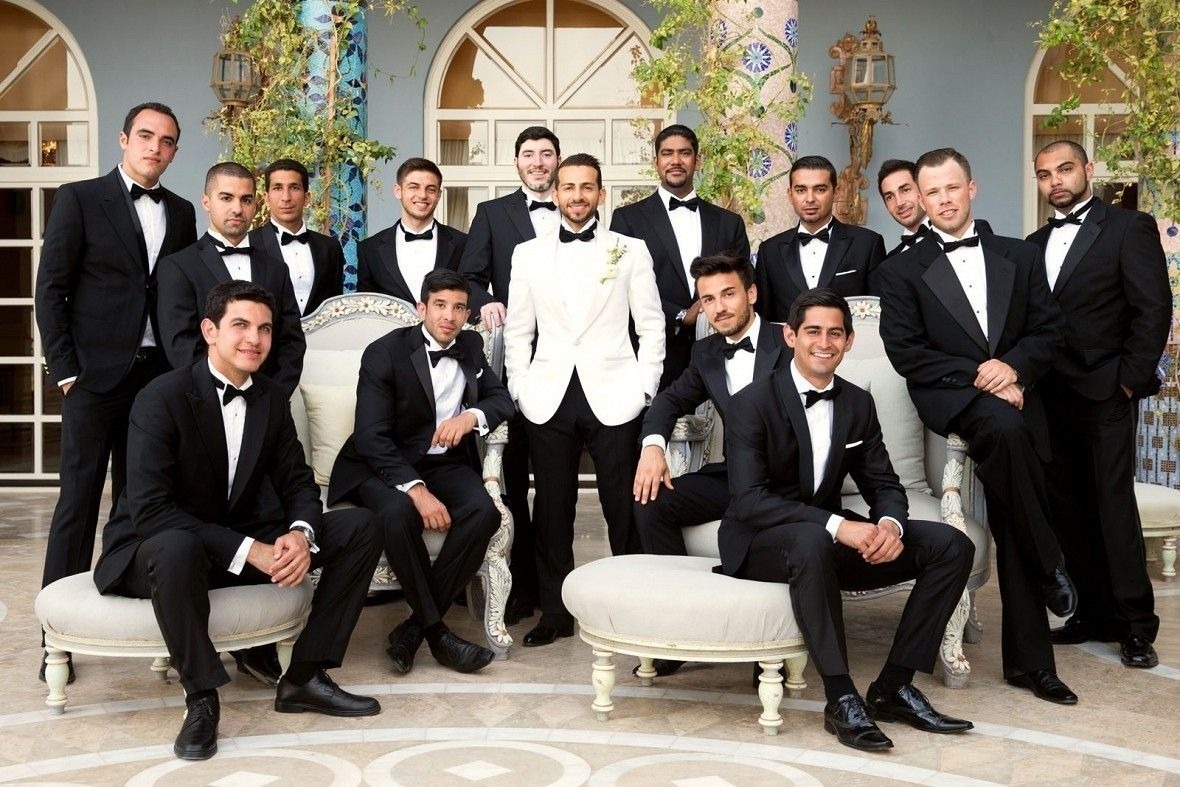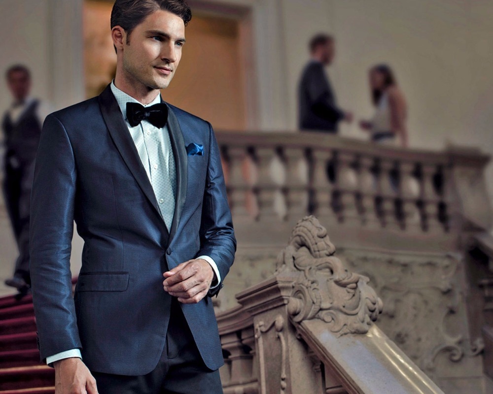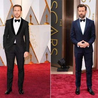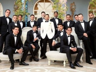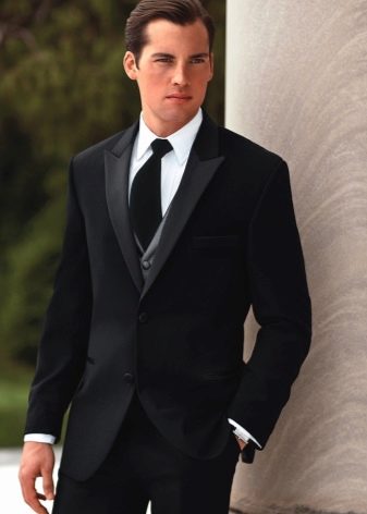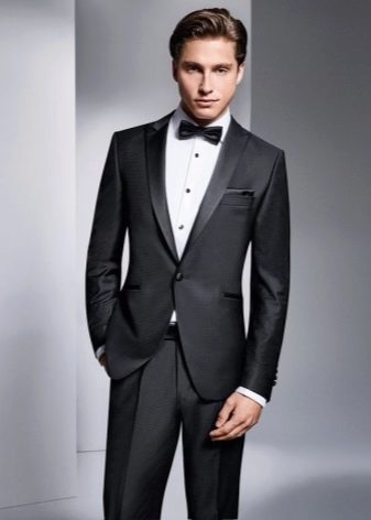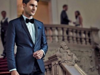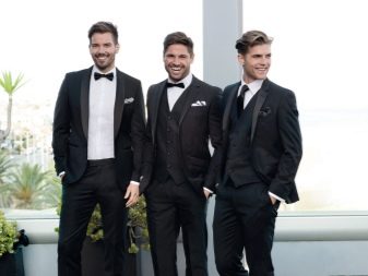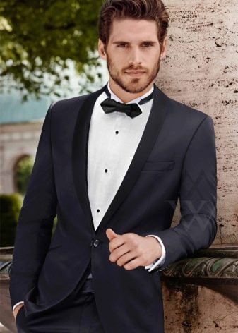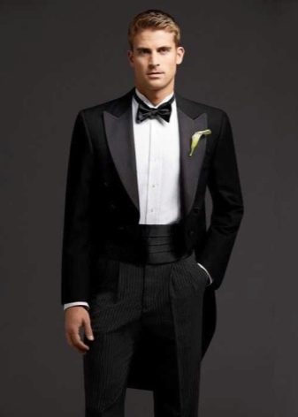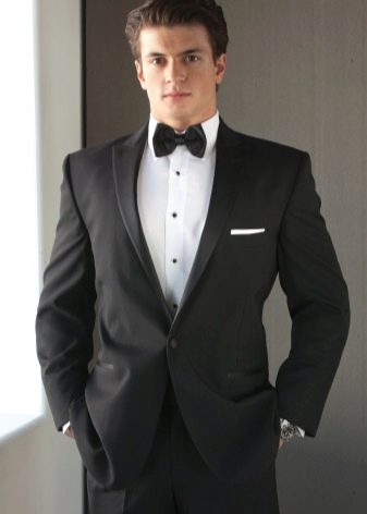 Au début de la soirée, ils choisissent la deuxième option de style. Après le coucher du soleil, vous devez vous changer en smoking noir. Ils portent une chemise blanche et un nœud papillon assorti à la couleur d'un smoking.