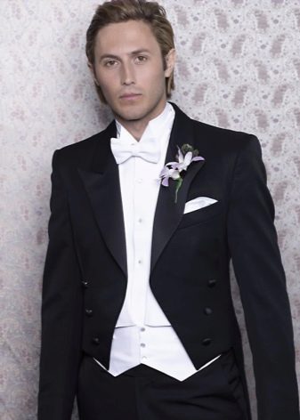 Dès le soir venu, vous devez vous changer pour le style White Tie. Dans ce cas, un nœud papillon blanc est porté avec un costume classique. Ils portent également un gilet blanc comme neige et la même chemise. En même temps, le manteau de queue reste noir.
